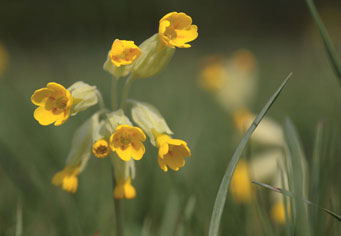 The cowslip (primula veris) appears early, in patches. In late April it is the most prominent flower in the meadow. It would have been much more common in earlier times, and of interest in cooking and medicine. It gets into poetry as well, where Shakespeare noted the bell-shaped flowers.